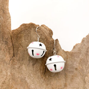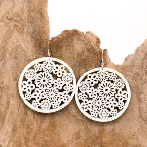 Ohrbehang Holz Ornament mit Blumen weiß rund