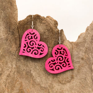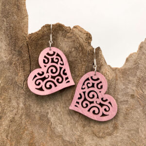 Ohrgehänge Holz Herzen-Ornamente rosa