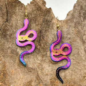X-Energie-Ohrgehänge Edelstahl Schlange mit Gestirnen groß plattiert