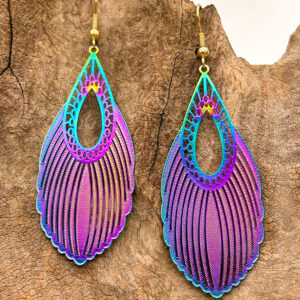 Tropfen-Energie-Ohrgehänge Edelstahl Tropfen Pfauenfeder plattiert