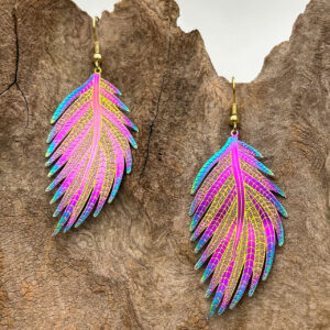 X-Energie-Ohrgehänge Edelstahl Pfauenfeder 2 plattiert