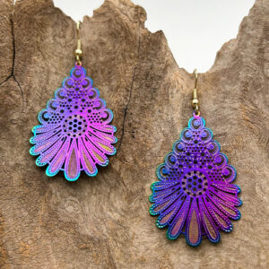 Tropfen-Energie-Ohrgehänge Edelstahl Mandala klein im Kreis