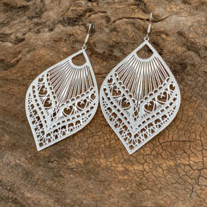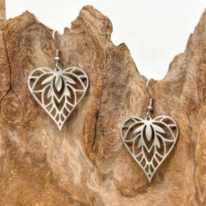 • Tropfen-Energie-Ohrgehänge Edelstahl Blatt mit Herzen (beweglich)