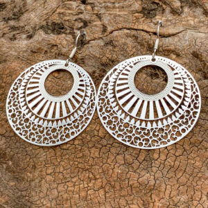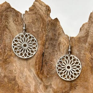 • Tropfen-Energie-Ohrgehänge Edelstahl Mandala klein im Kreis