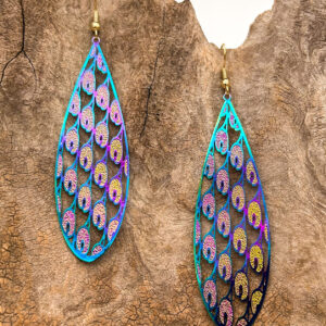 Tropfen-Energie-Ohrgehänge Eisen Blatt bunt spitz plattiert