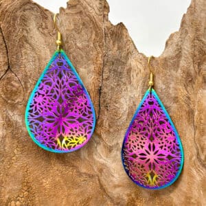 • Tropfen-Energie-Ohrgehänge Edelstahl Tropfen floral plattiert