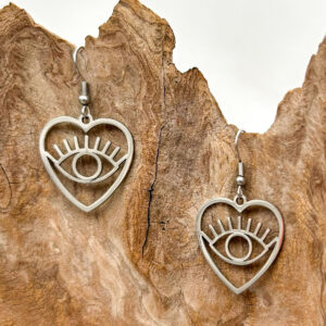 Tropfen-Energie-Ohrgehänge Edelstahl Herz mit Auge