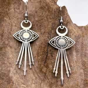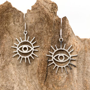 X-Energie-Ohrgehänge Edelstahl Auge im Kreis mit Strahlen
