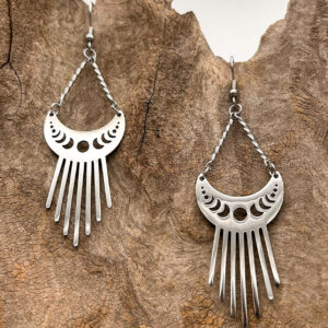 Löwenzahn-Energie-Ohrgehänge Edelstahl Schnörkelspirale Mond