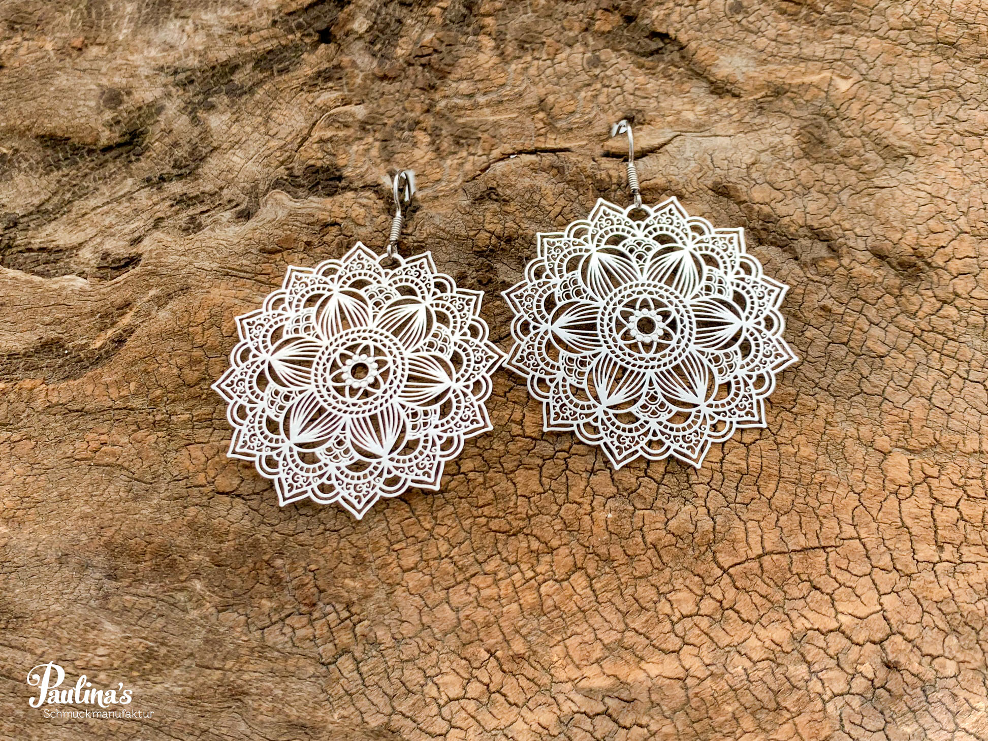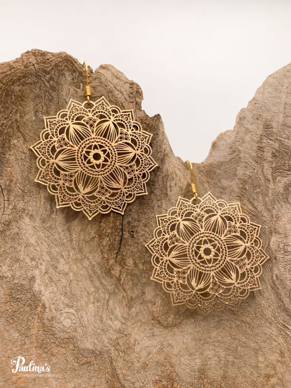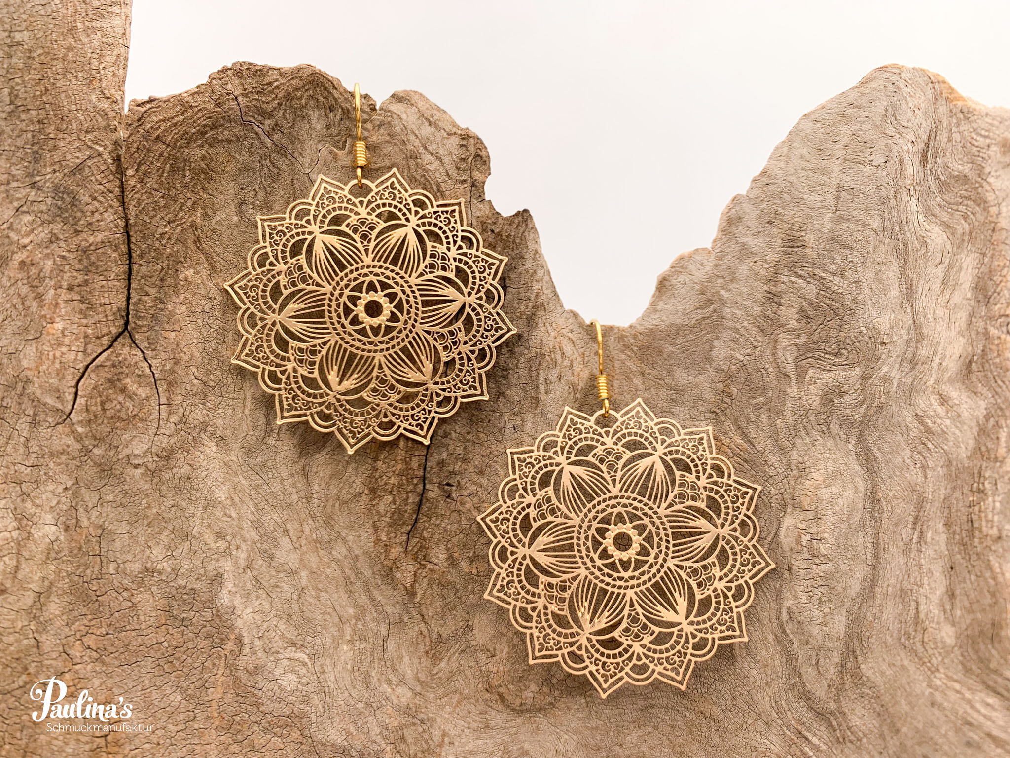 Ohrgehänge aus Eisen und Edelstahl, mit edelstahlfarbenem bzw. vergoldetem Ohrhaken.