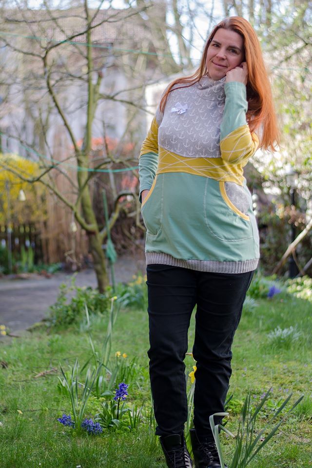 Die Brustabnäher und Rückenabnäher sorgen für die perfekte Passform. In der Basicvariante kann der Bow-Cut-Hoodie auch für schwangere Damen genäht werden. Dazu gibt es einen Link in der Anleitung, wie du das am besten machst.
