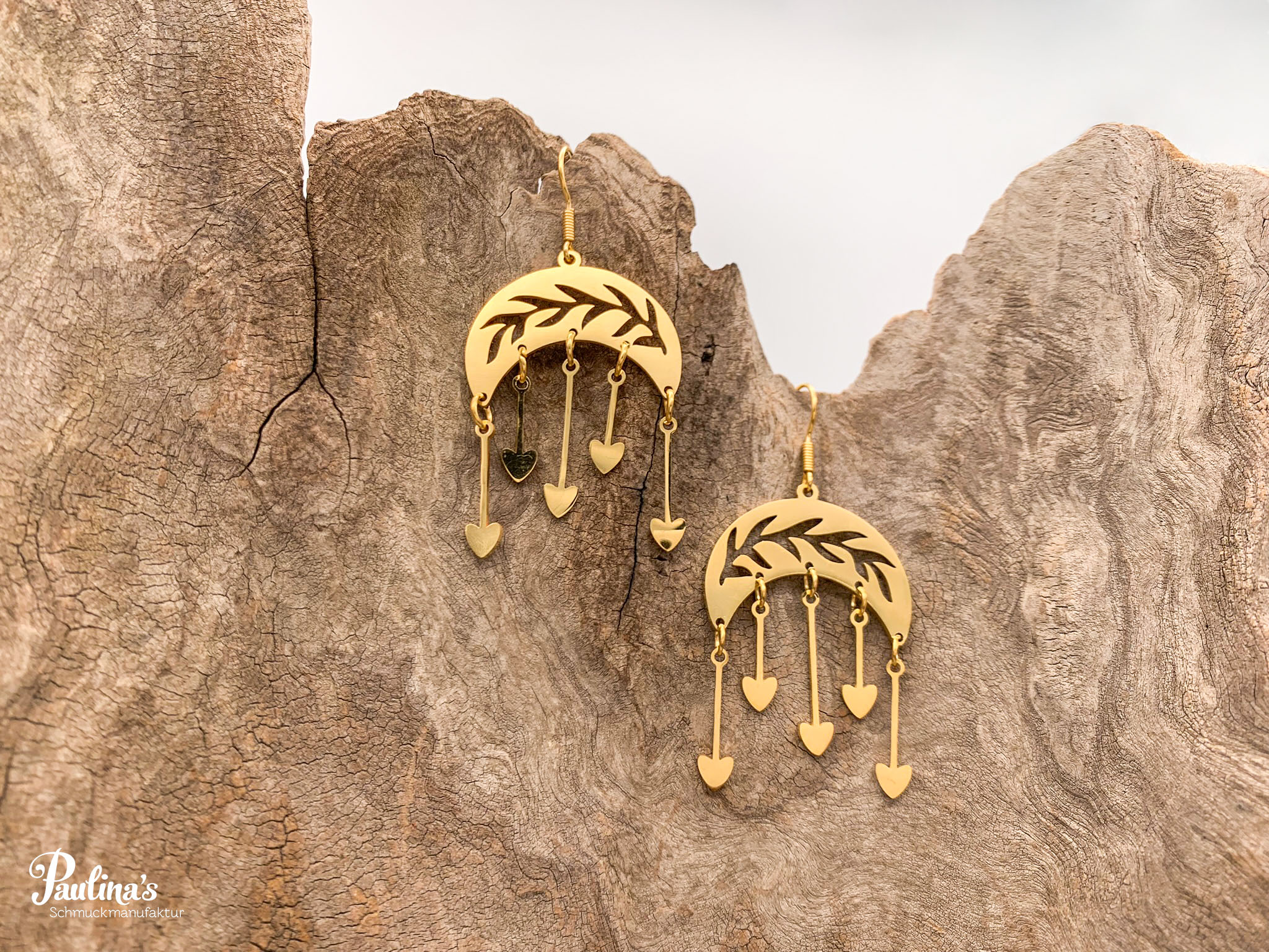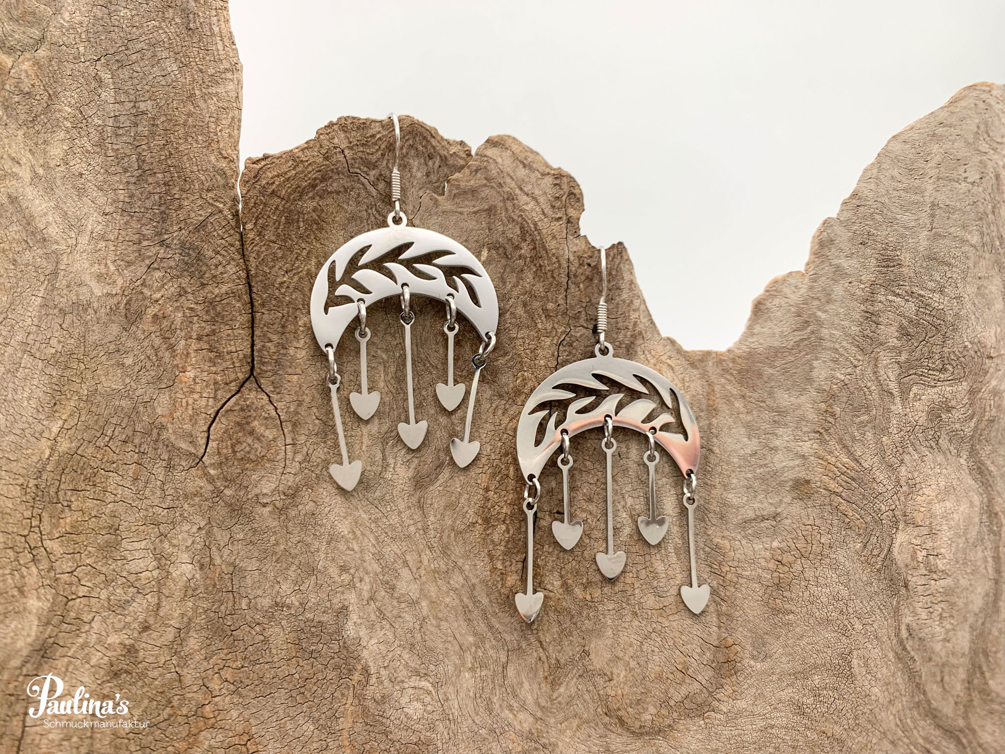 Ohrgehänge aus Edelstahl mit edelstahlfarbenem bzw. vergoldetem Ohrhaken.