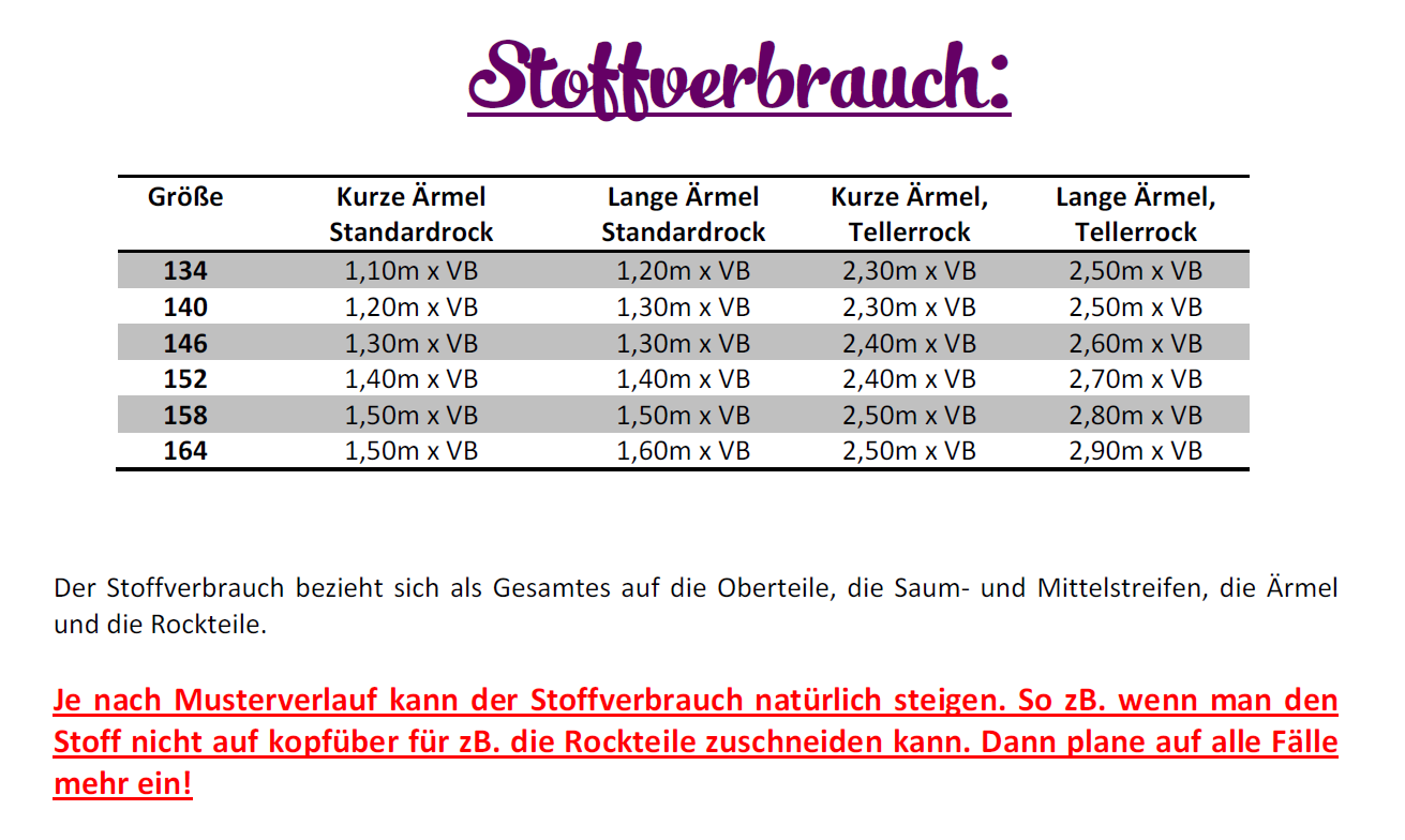 • Schnittmuster für ein Kleid in den Größen 134-164