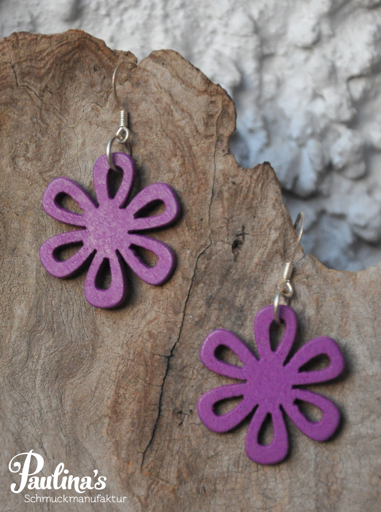 Sommerliche Blumenohrgehänge aus Holz.