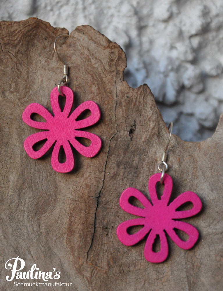 Sommerliche Blumenohrgehänge aus Holz.