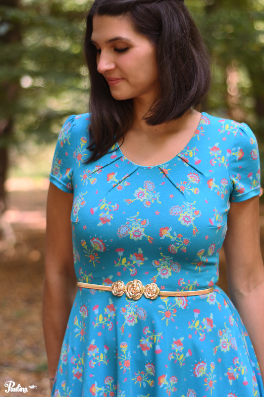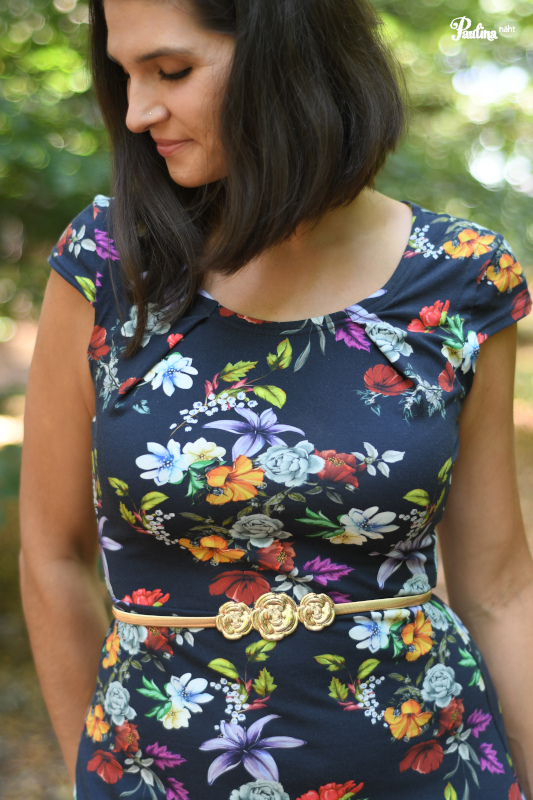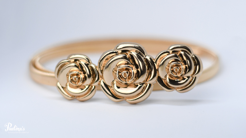 Geschlossen wird der Gürtel vorne bei den Rosen.