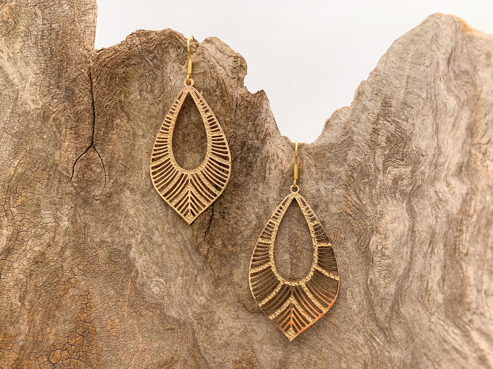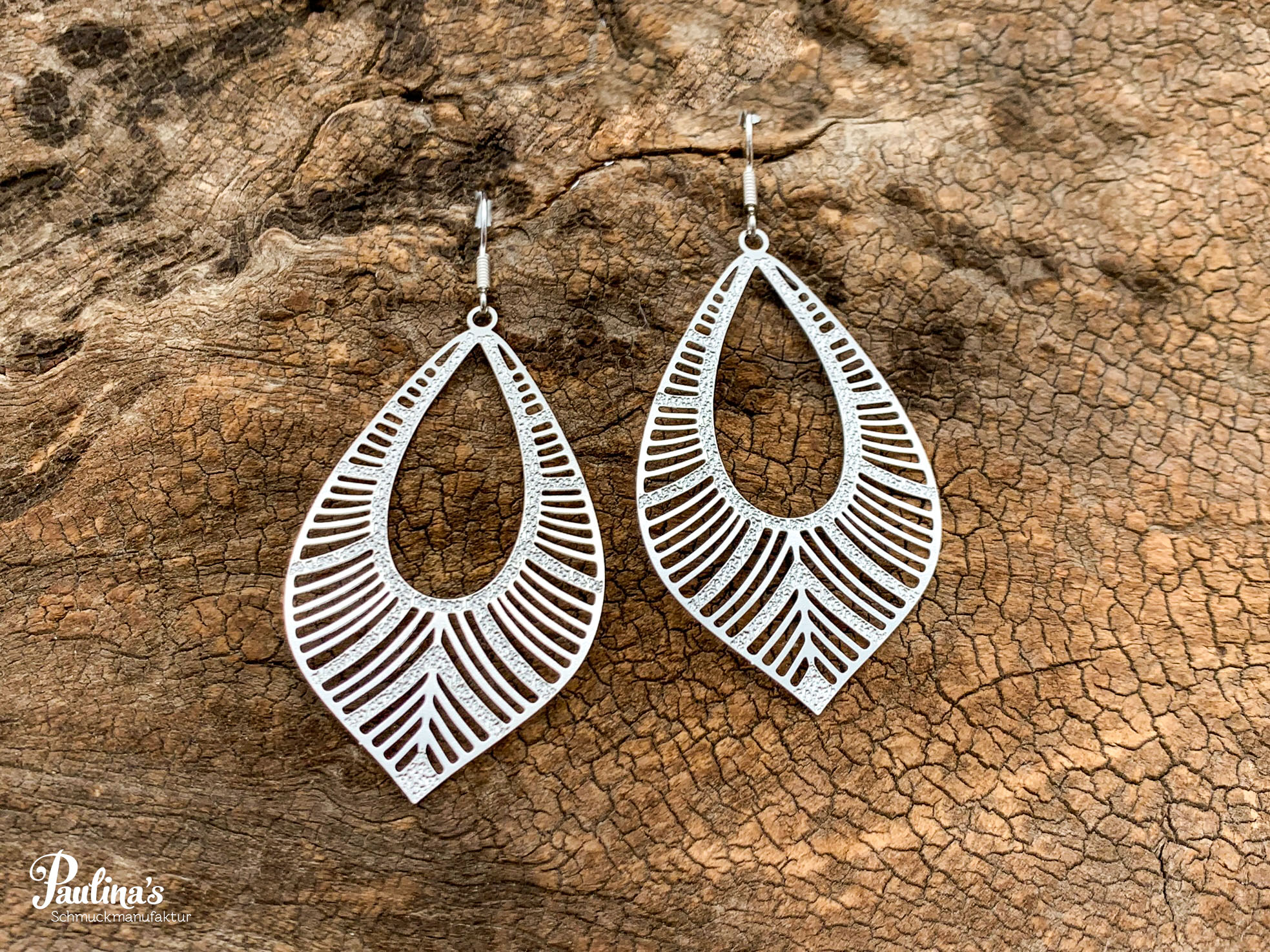 Ohrgehänge aus Eisen und Edelstahl, mit edelstahlfarbenem bzw. vergoldetem Ohrhaken.