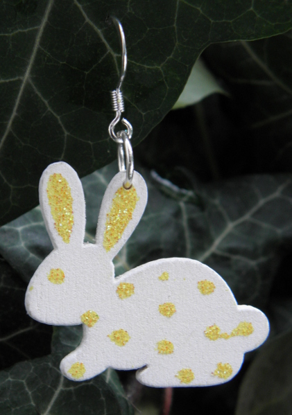 Weiße O(hr)sterhasen mit gelben Glitzerpunkten