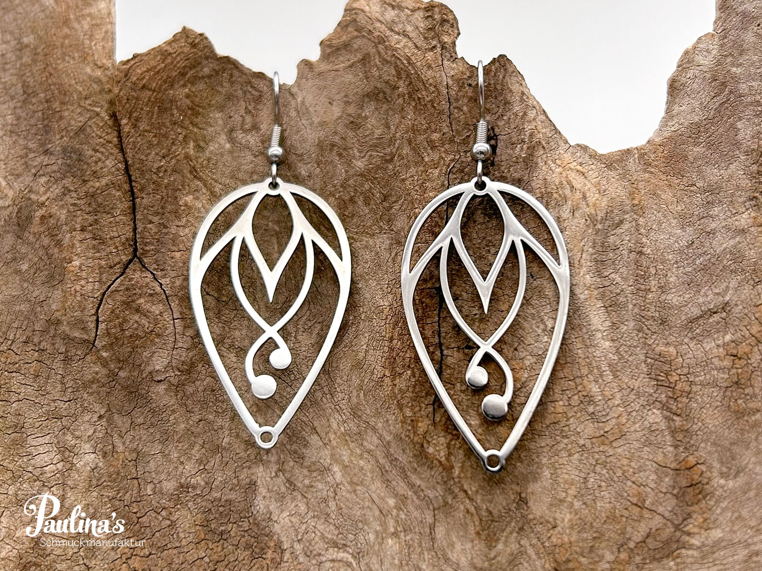 Ohrgehänge aus Edelstahl mit edelstahlfarbenem bzw. vergoldetem Ohrhaken.